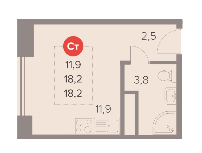 Студия · 18 м² · 13/22