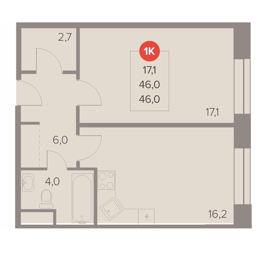 1-комн · 46 м² · 6/22