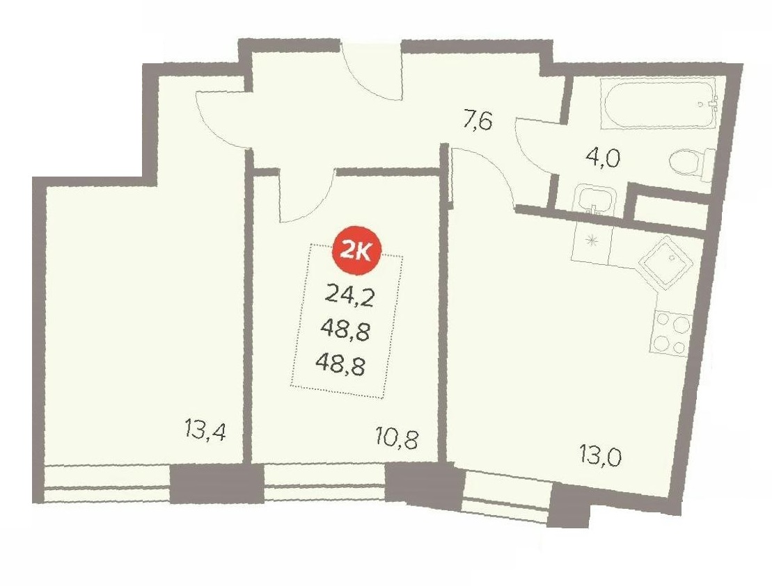 2-комн · 49 м² · 2/22