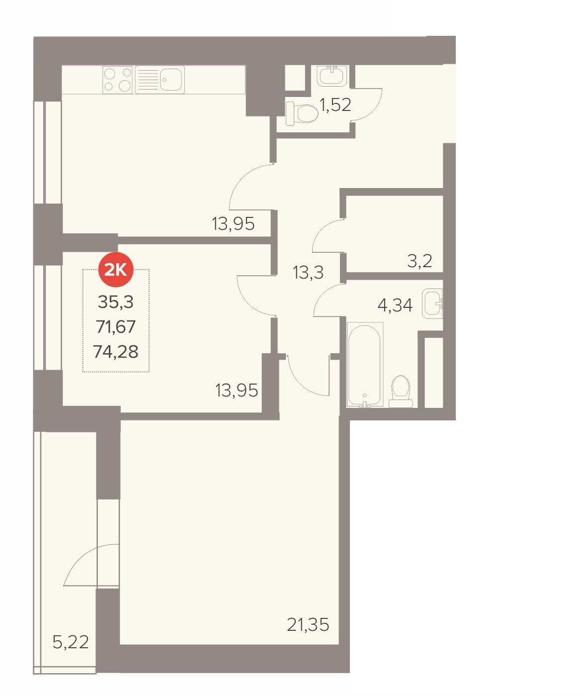 2-комн · 74 м² · 8/22