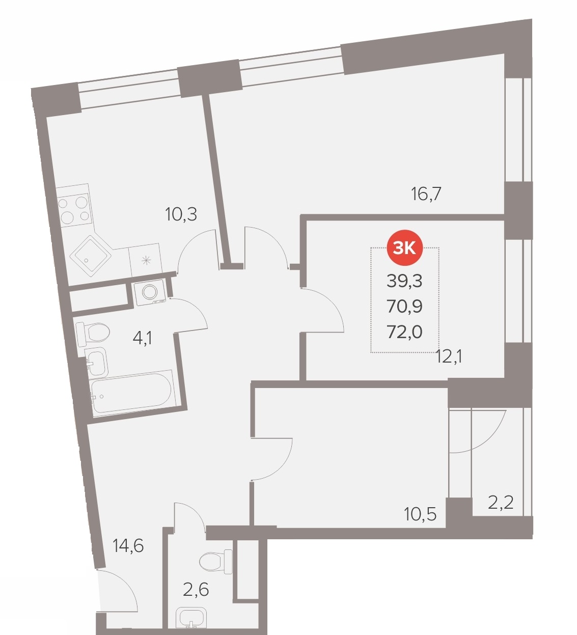 3-комн · 72 м² · 2/22