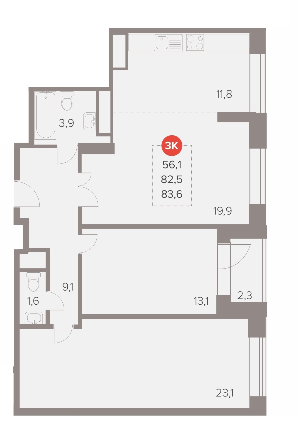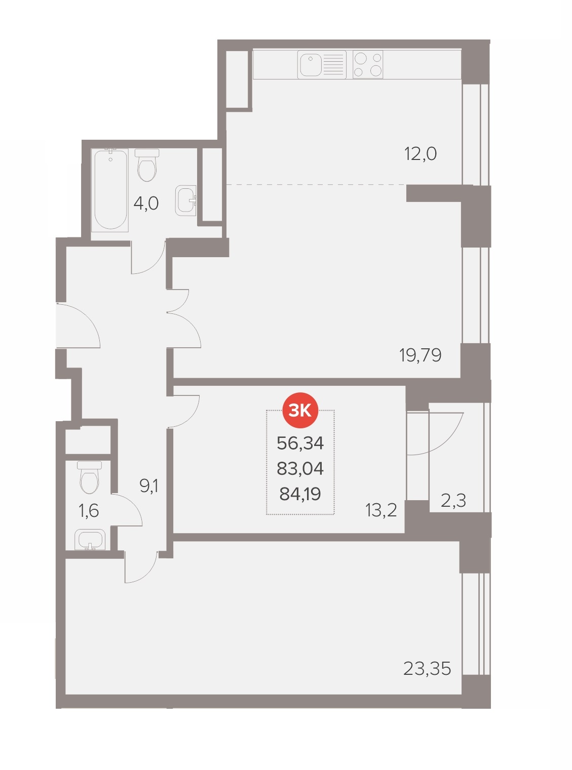 3-комн · 84 м² · 12/22