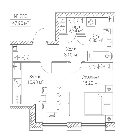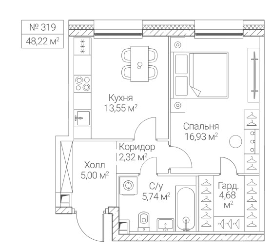 1-комн · 48 м² · 30 эт.