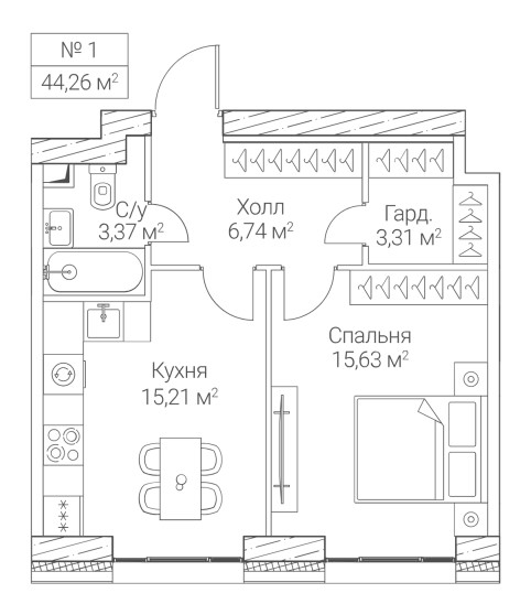 1-комн · 44 м² · 2 эт.