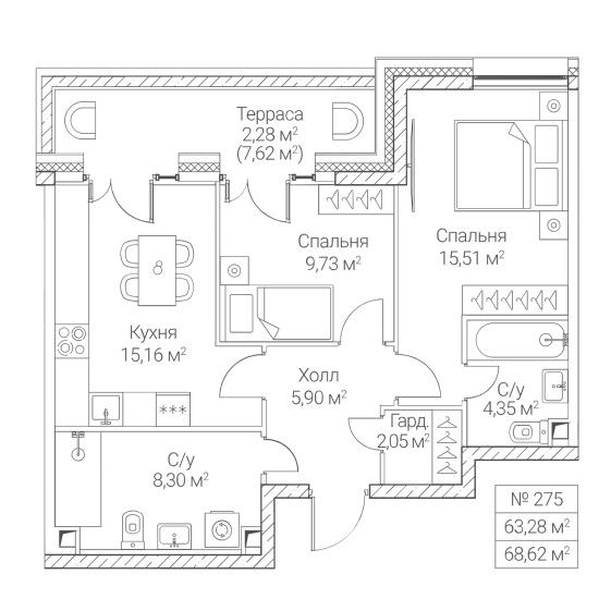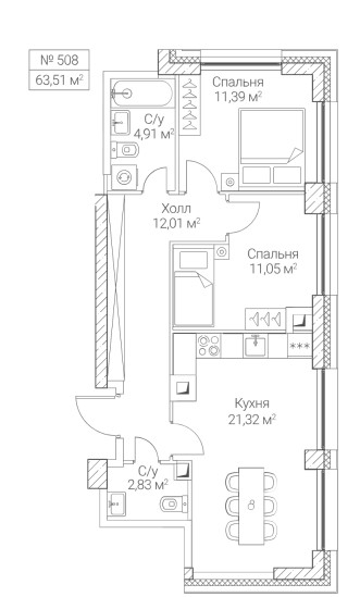 2-комн · 63 м² · 27/28