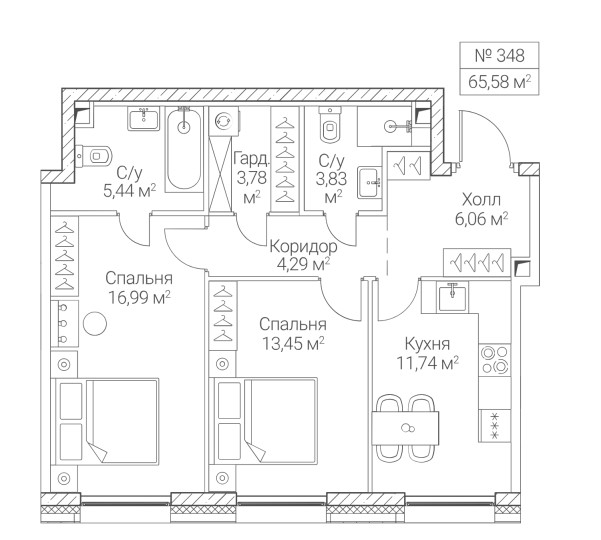 2-комн · 66 м² · 3/16