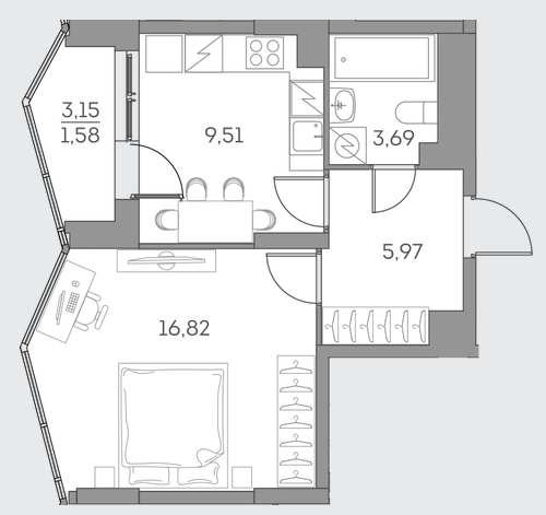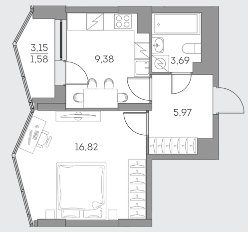 Студия · 28 м² · 21/28