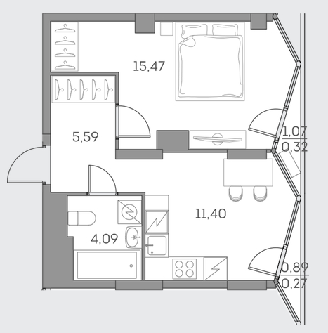 1-комн · 40 м² · 5/28