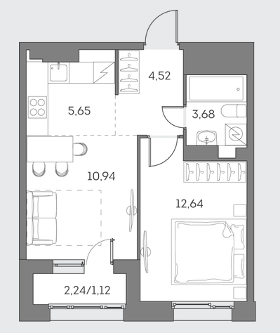 Студия · 28 м² · 12/28