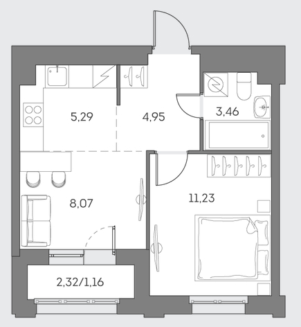 Студия · 23 м² · 23/28
