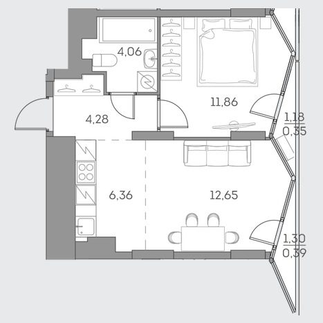 1-комн · 39 м² · 8/28