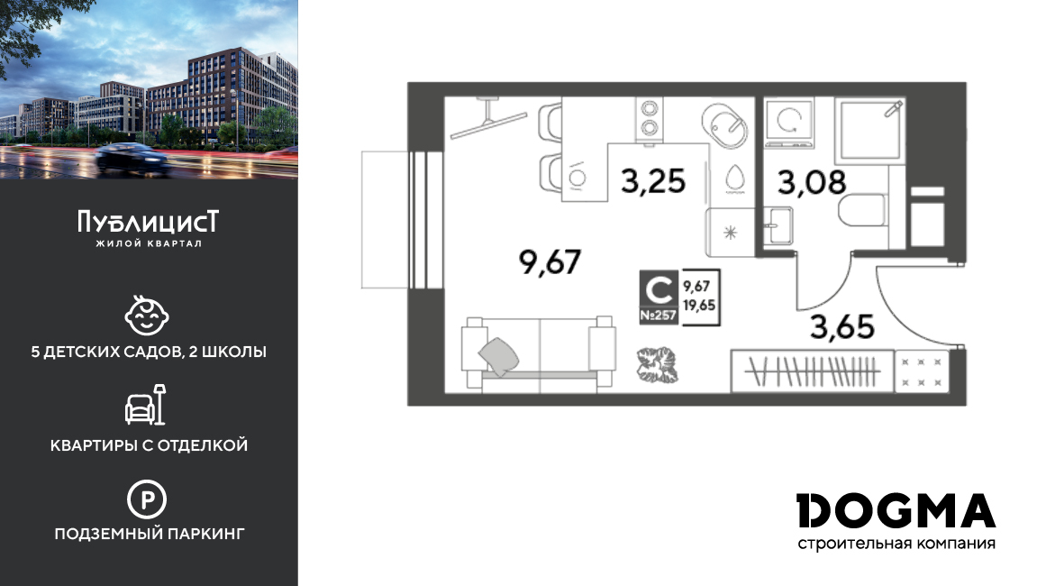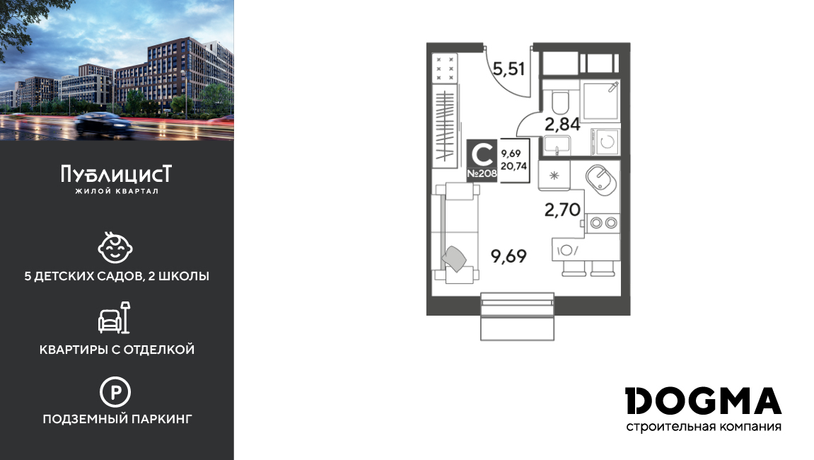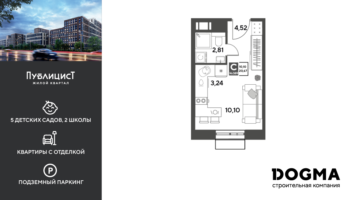 Жилой квартал "Публицист" от DOGMA стоится в Пушкино на Зеленой улице. Проект комфорт-класса будет возводиться в пять очередей, кроме жилых домов на территории комплекса появятся магазины, ФОК, поликлиника, 2 школы (по 1650 мест), 5 детских садов (по 300 мест в каждом), станция скорой помощи, опорный пункт полиции, планируется осуществить благоустройство прилегающей к территории лесопарка, общей площадью 20,1 га.