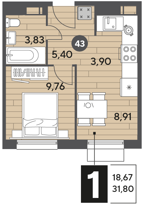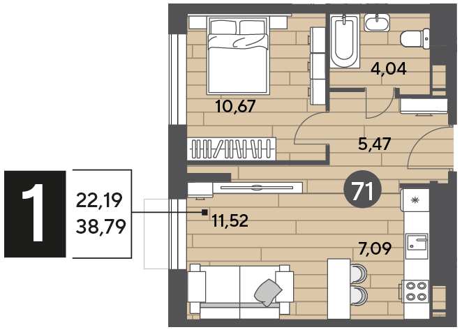 1-комн · 39 м² · 6/15