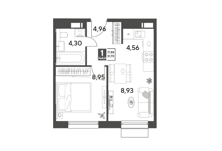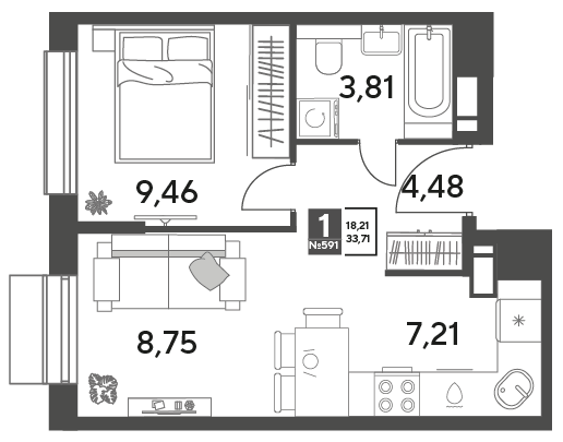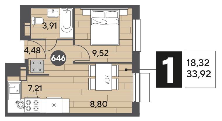 Студия · 18 м² · 3/15