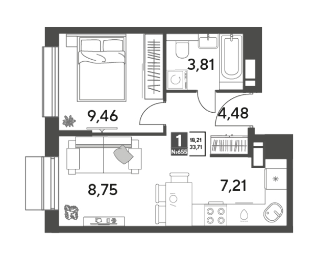Студия · 21 м² · 4/15