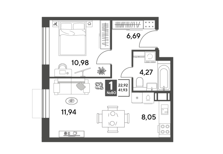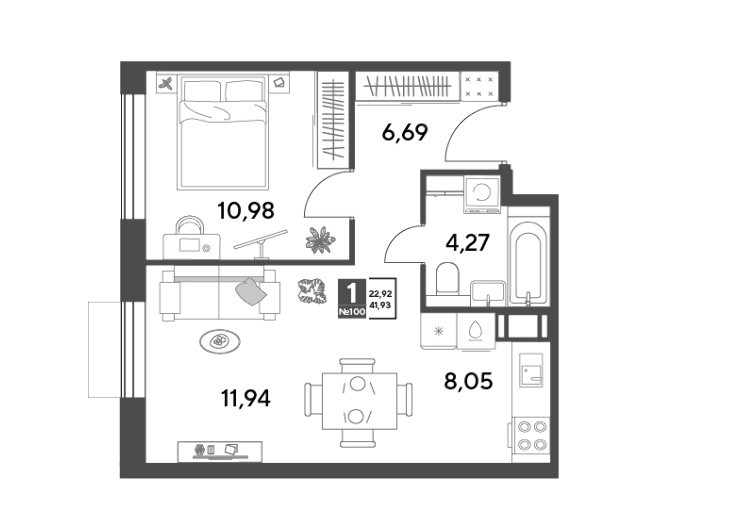 1-комн · 42 м² · 4/12