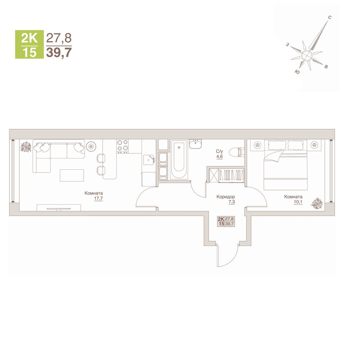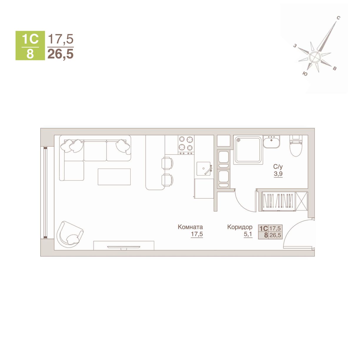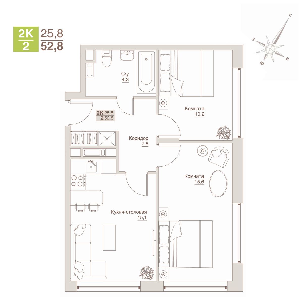 Минимальная площадь: 26,5 м² Максимальная площадь: 52,8 м²
