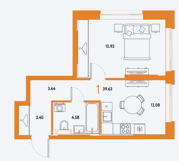 1-комн · 40 м² · 2/25