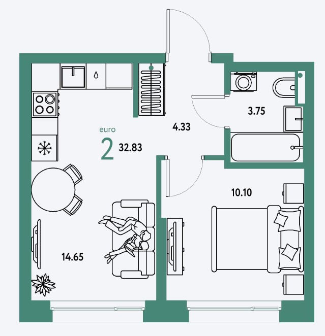 Студия · 28 м² · 2/25