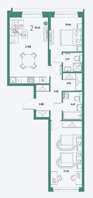 2-комн · 70 м² · 13/25