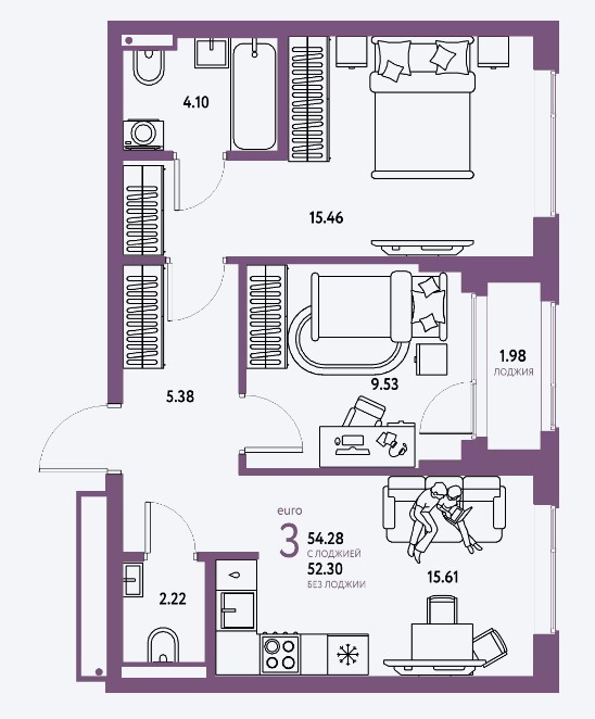 3-комн · 54 м² · 9/25