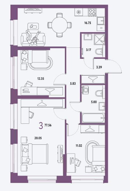 3-комн · 78 м² · 17/25