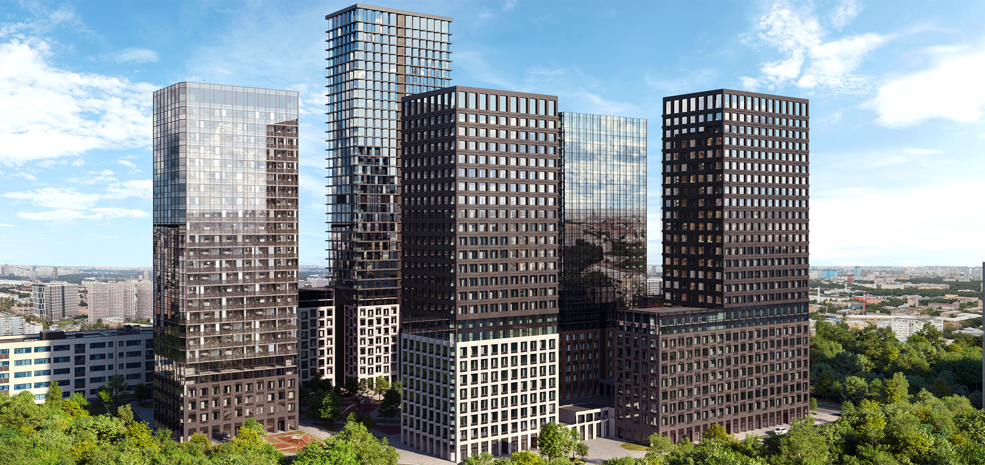 MYPRIORITY Мневники от "Гранель" - проект бизнес-класса, высотой до 43 этажей. Архитектурная концепция будет реализована по проекту от бюро APEX, фасады будут украшены эркерами, францускими балконами и панорамными окнами. Для облицовки стен выбраны металлические кассеты и декоративный камень. Кроме жилых корпусов на территории запланирован бизнес-центр. Во входных группах разместятся лаунж-зоны, лапомойки, колясочные, гостевые санузлы. Из социальной инфраструктуры запланированы два детских сада на 128 мест суммарно. На подземных этажах будет паркинг на 466 машино-мест и кладовые.