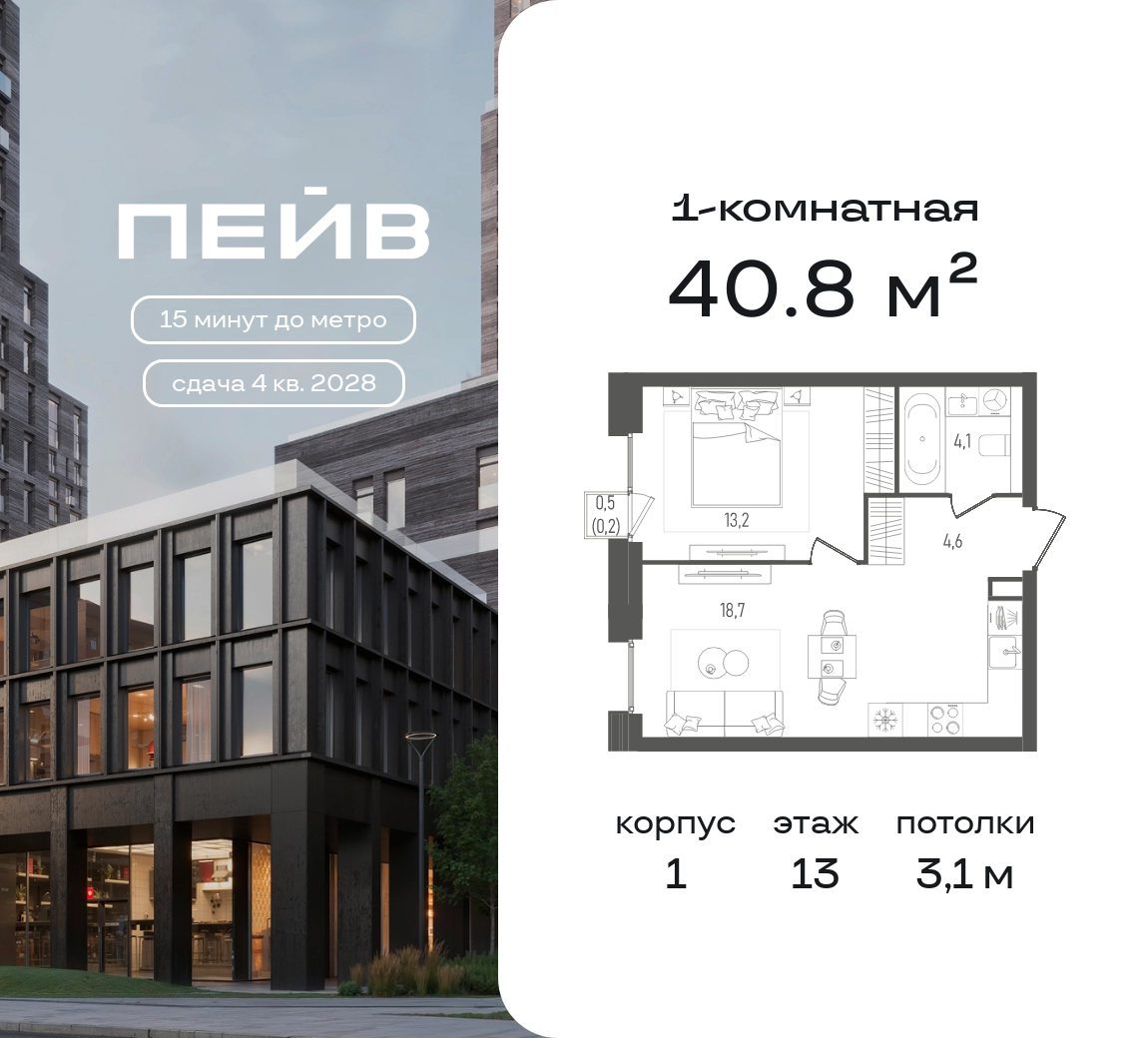 1-комн · 41 м² · 13 эт.