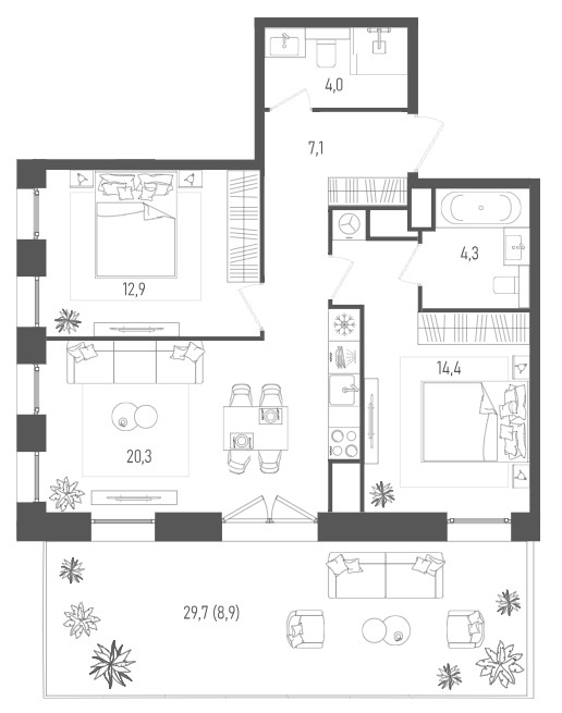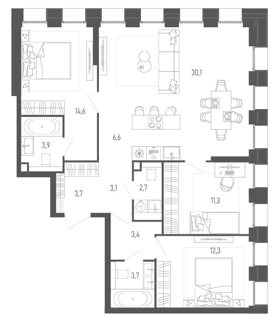 Проект PAVE от FORMA позиционируется как бизнес-класс. В него войдет 6 разноэтажных корпусов, высотой от 7 до 33 этажей, с подземным паркингом на 504 машино-мест. Квартир в проекте будет 848, застройщик разработал планировки с террасами, окнами в пол, на верхних этажах разместятся пентхаусы с возможностью установки камина. Для остекления в том числе будет использована технология jumbo, она предполагает повышенную энергоэффективность, высокую светопропускную способность и звукоизоляцию. Квартиры будут передаваться без отделки или в предчистовой.