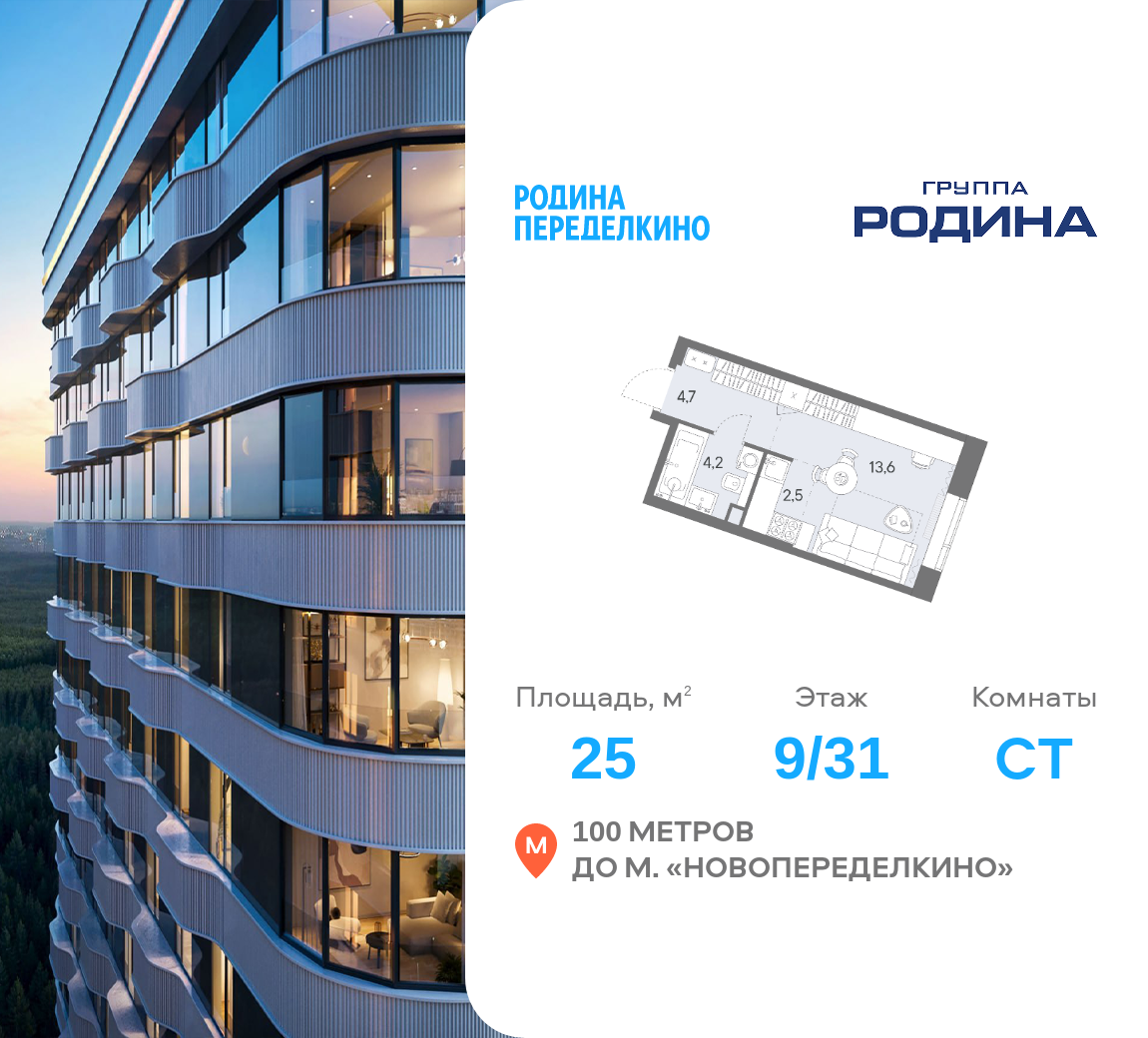 Студия · 25 м² · 9 эт.