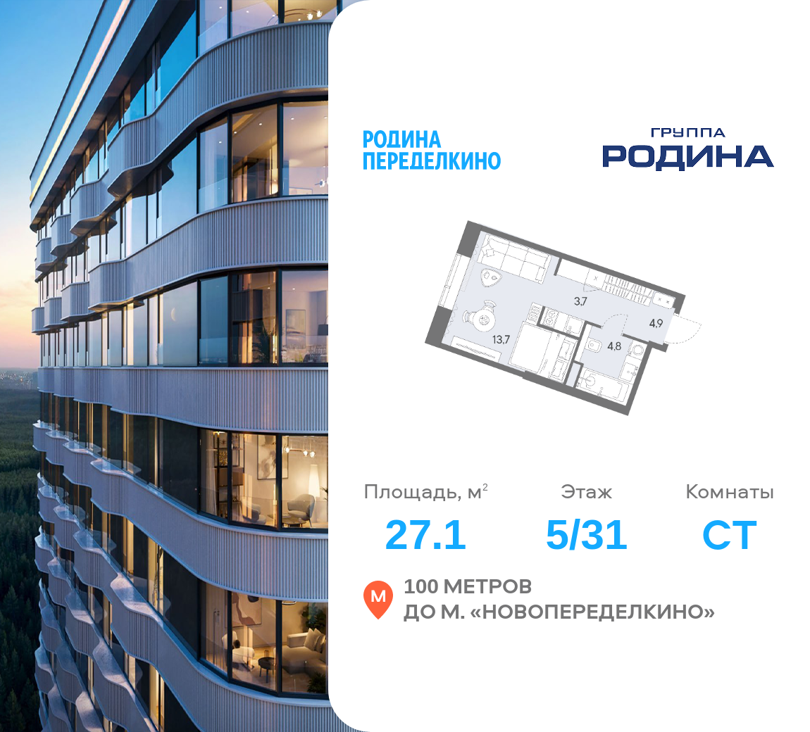 Студия · 27 м² · 19 эт.
