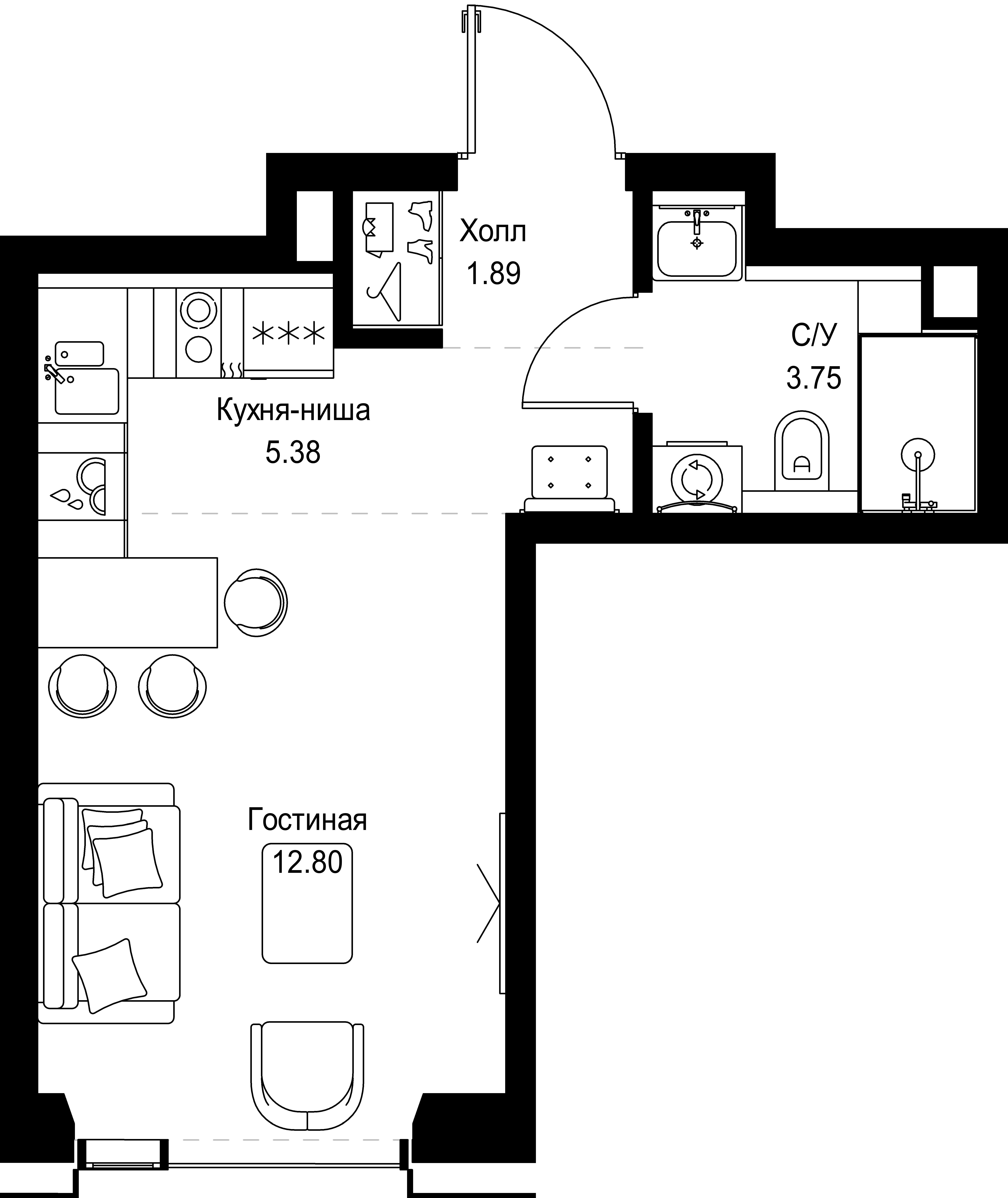 Студия · 24 м² · 19 эт.