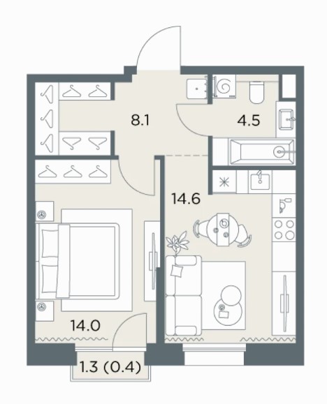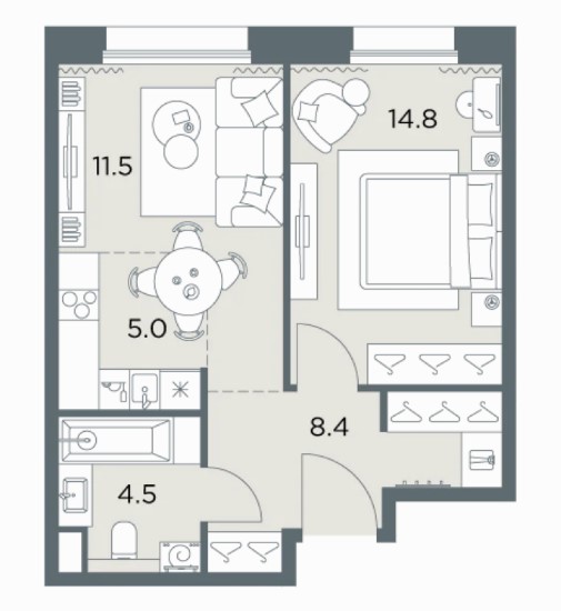 1-комн · 42 м² · 5 эт.