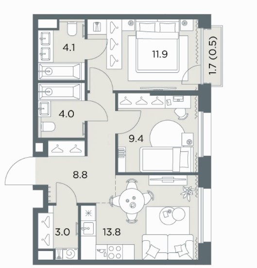 4-комн · 96 м² · 4 эт.