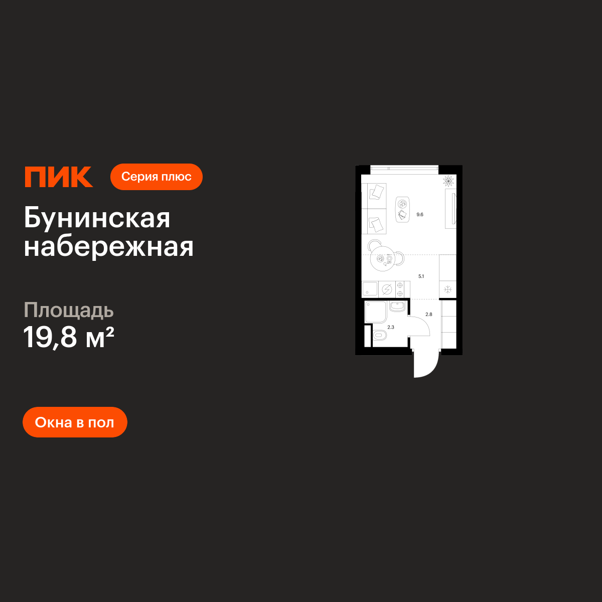 Студия · 19 м² · 9 эт.