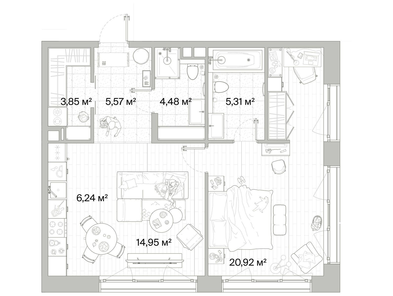 1-комн · 62 м² · 3/12
