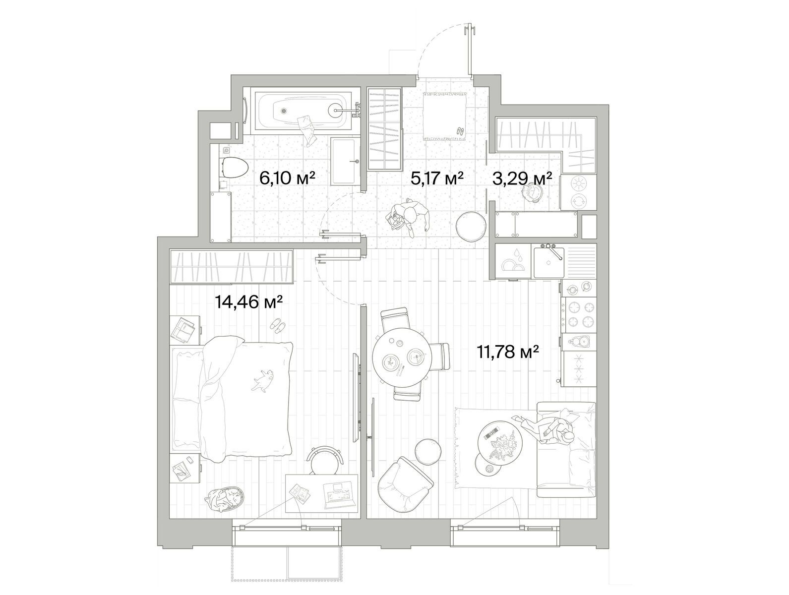 1-комн · 43 м² · 7/12