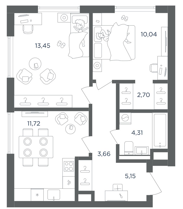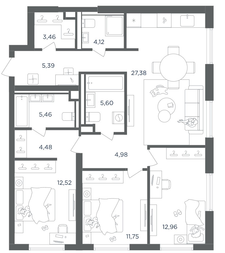 Первая очередь включает два дома высотой 52 и 45 этажей и паркинг на 473 машиномест с автомойкой. Там же выделена зона кладовых. В продажу поступило 1 079 квартир с разнообразными планировками. Все помещения предлагаются без отделки.