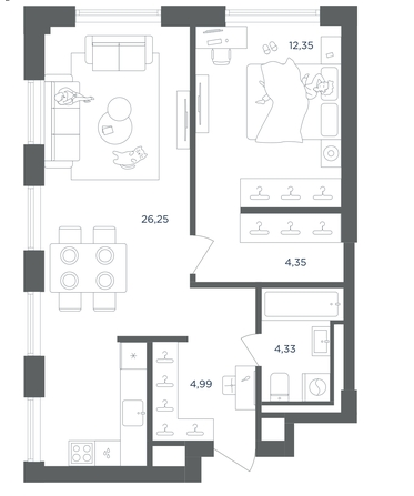 1-комн · 42 м² · 26/51