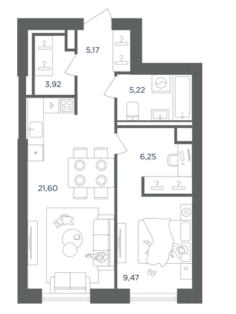 1-комн · 52 м² · 22/51