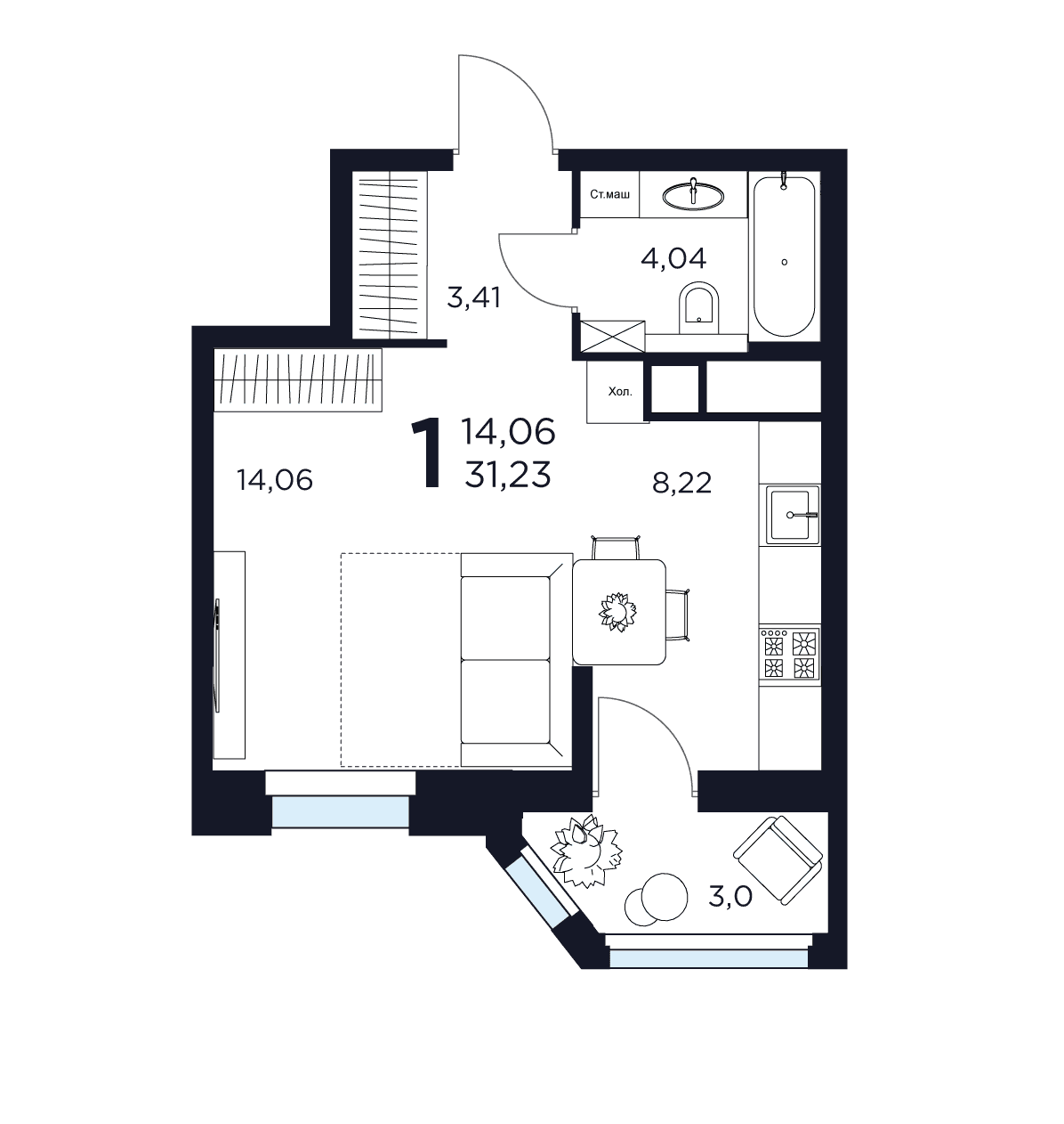1-комн · 31 м² · 3/15