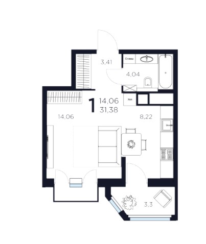 1-комн · 31 м² · 6/17