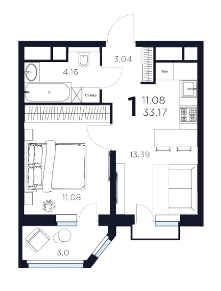1-комн · 33 м² · 8/17