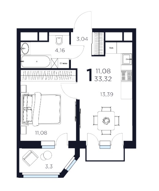 1-комн · 33 м² · 13/17
