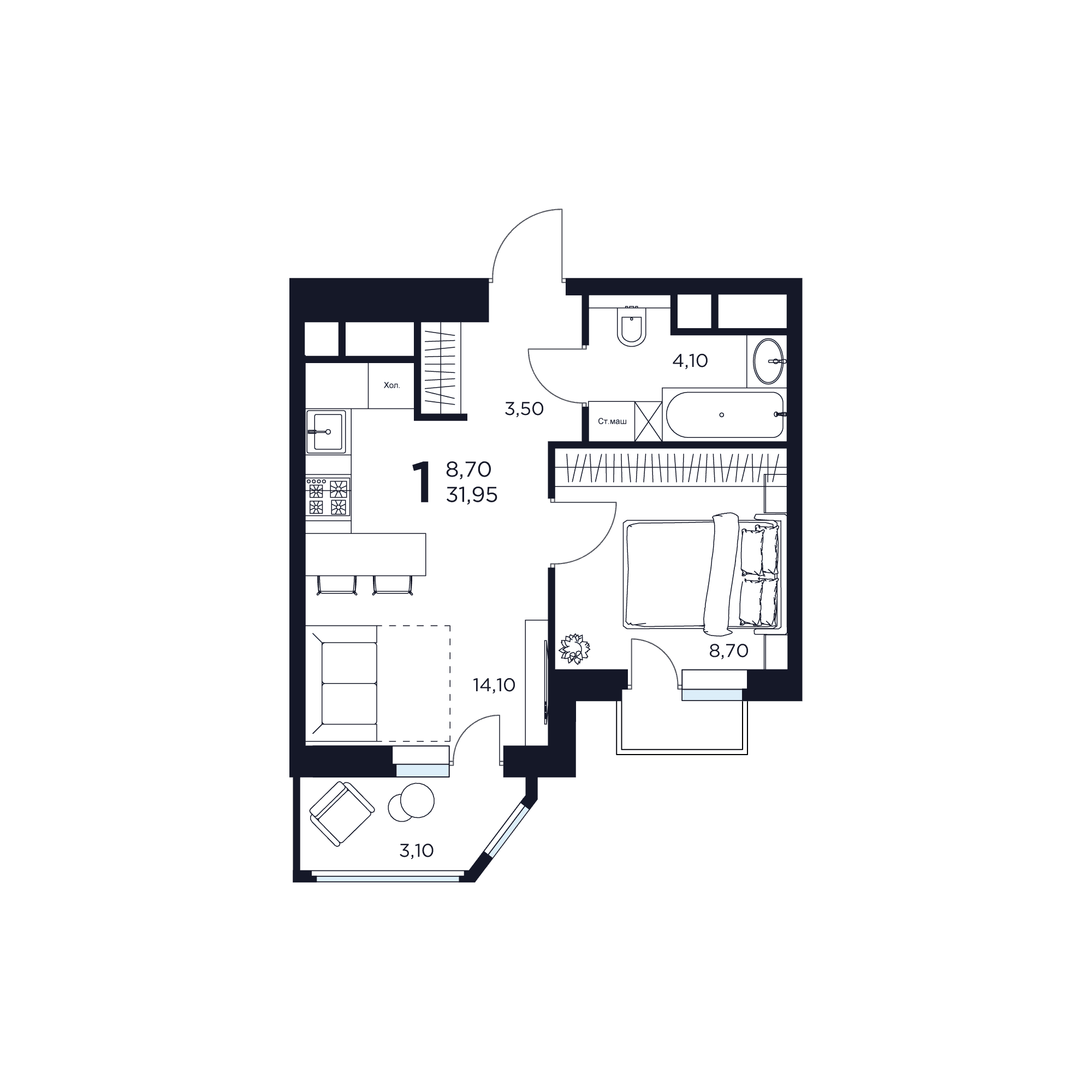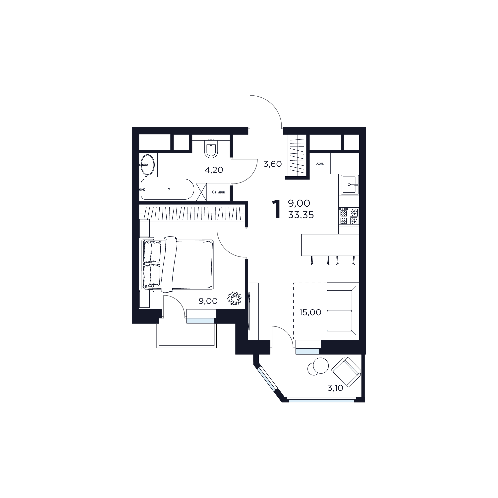 1-комн · 31 м² · 9/15