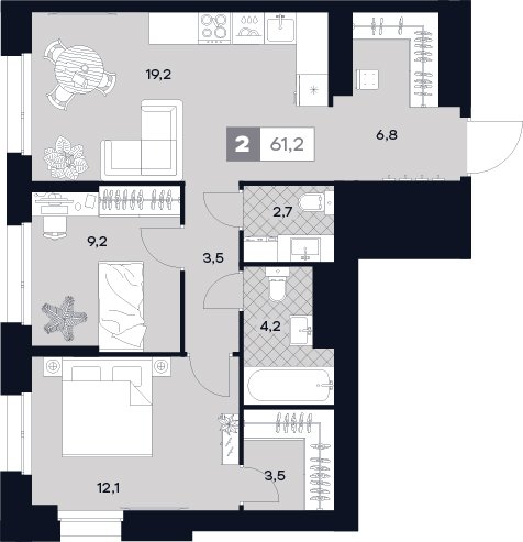 2-комн · 61 м² · 24/29