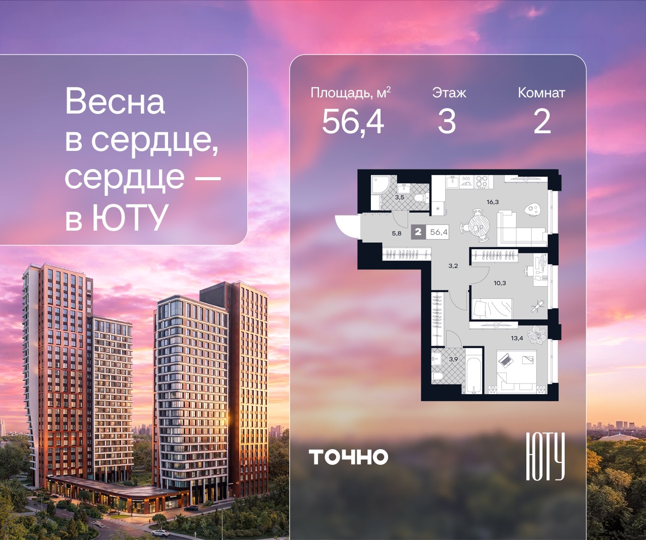 2-комн · 56 м² · 3/29