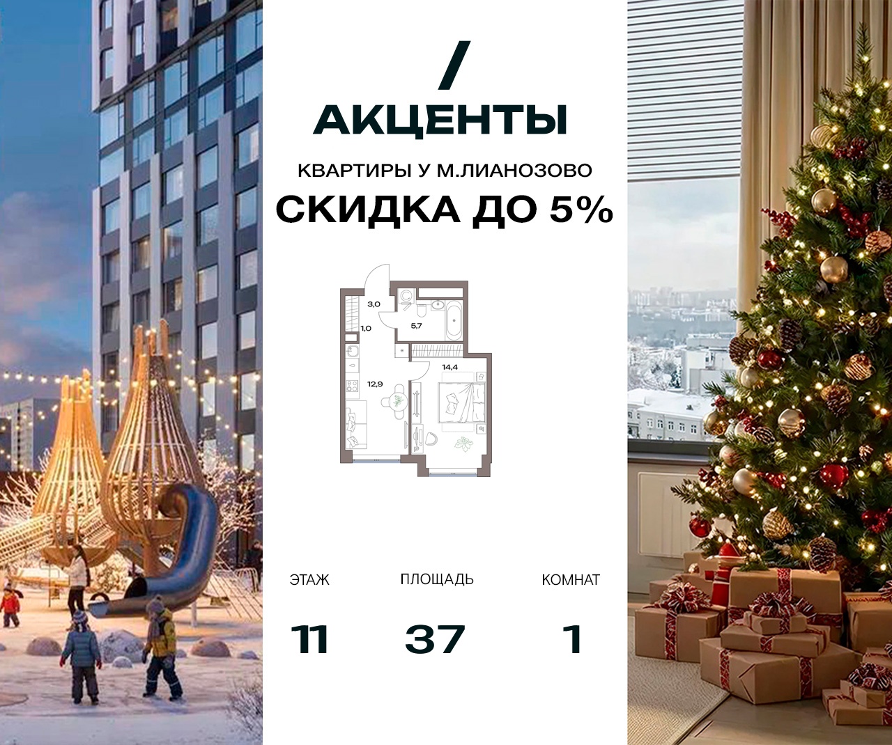 1-комн · 37 м² · 11/30