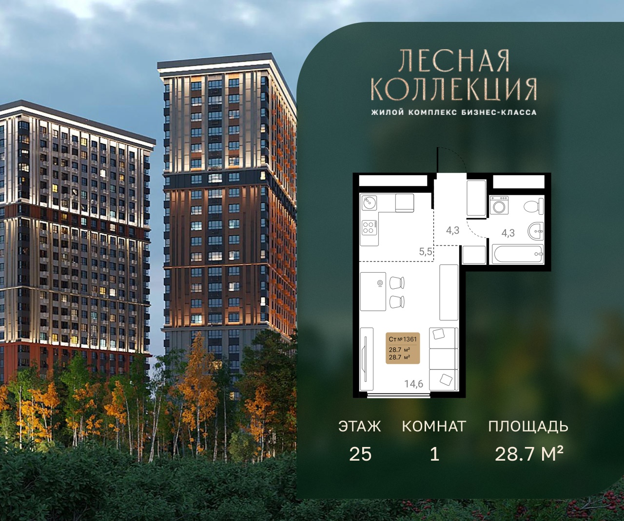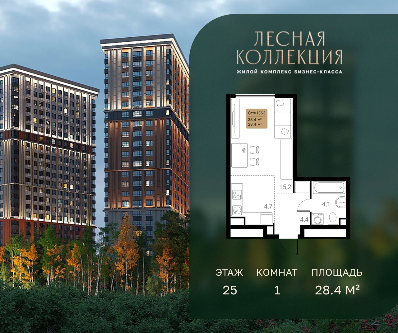 1-комн · 28 м² · 25 эт.