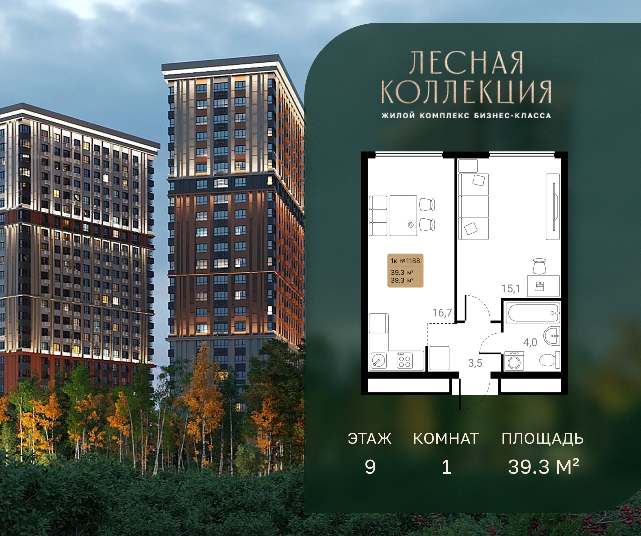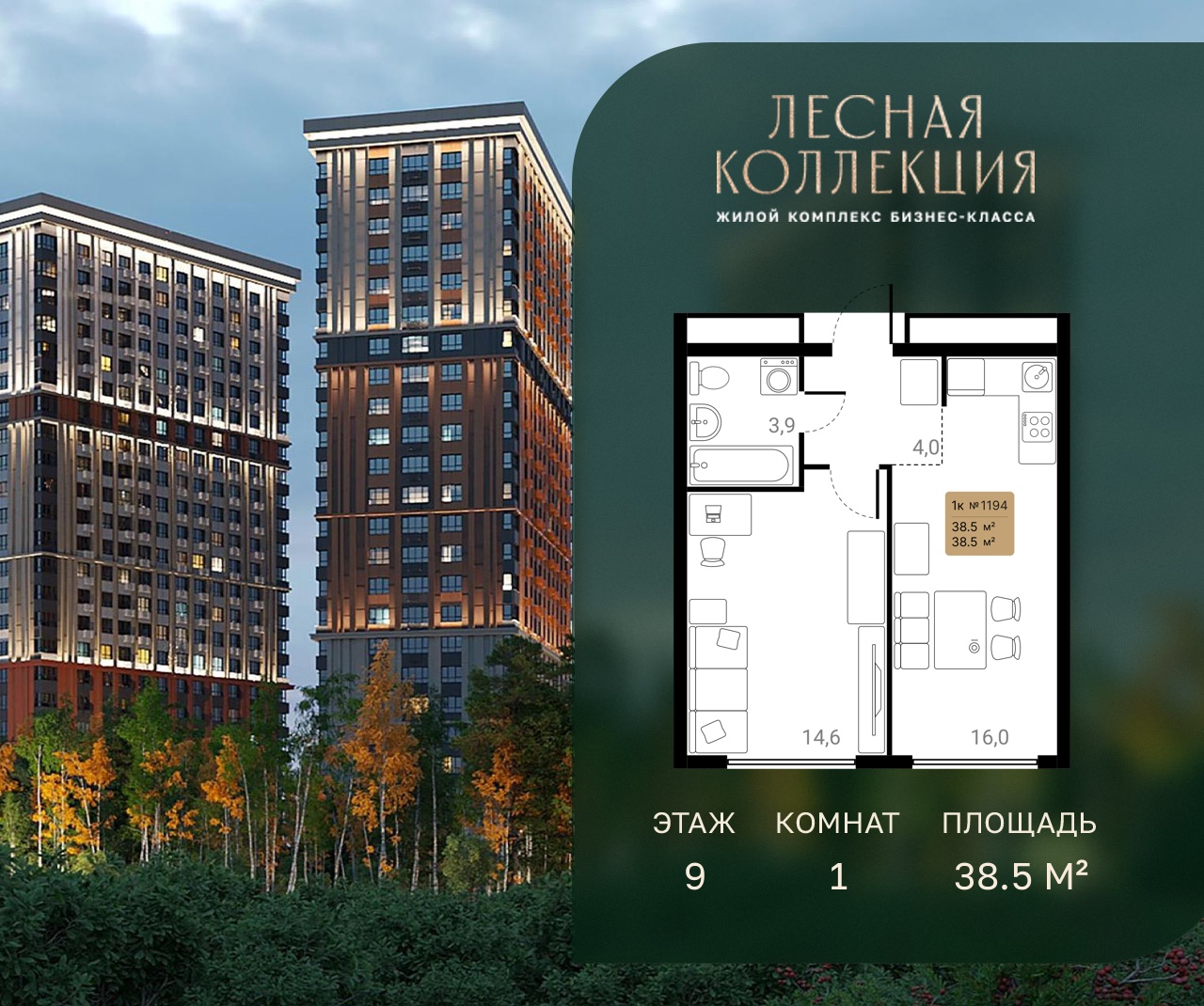 1-комн · 39 м² · 9 эт.